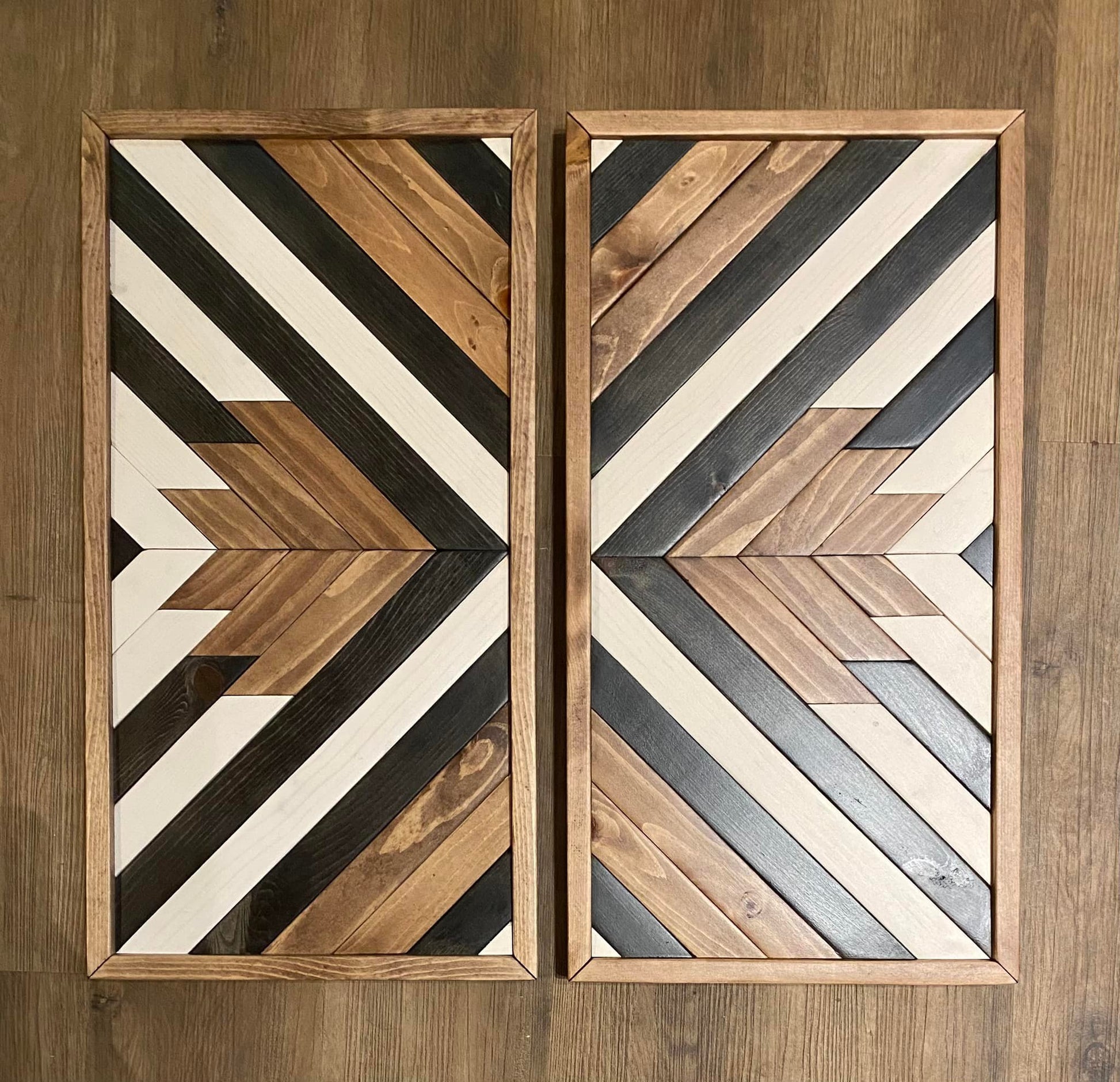 Set of two wooden mosaics. Size of each is approximately 12" x 24" x 1.25"