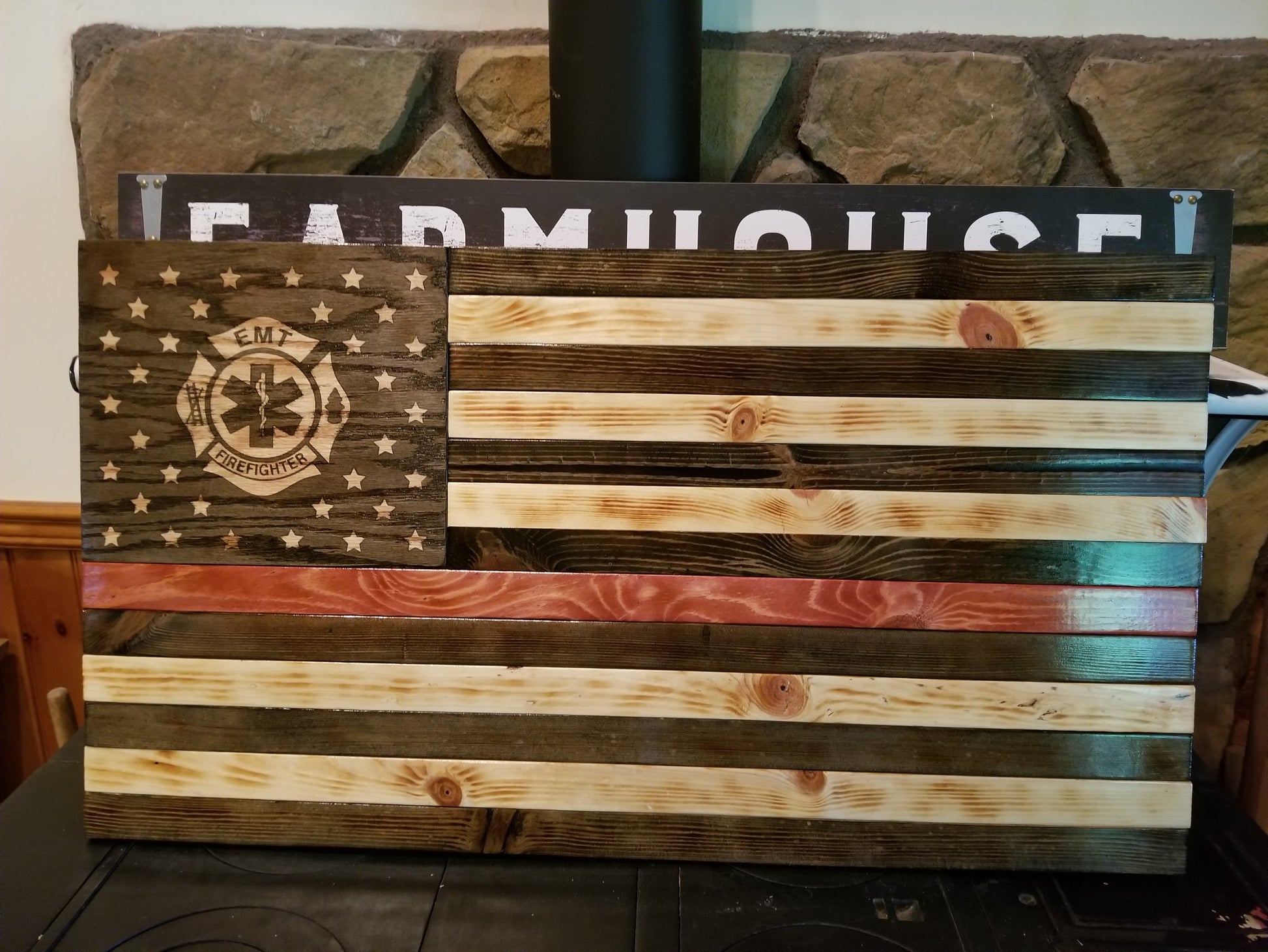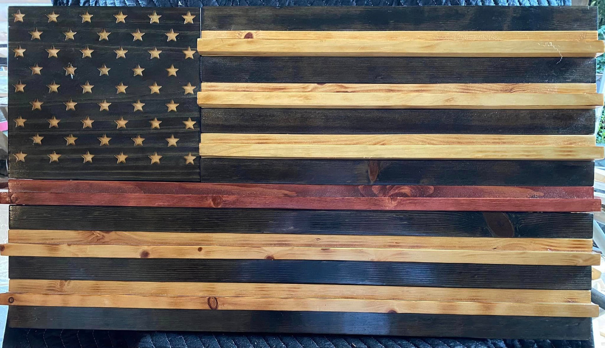 Display your challenge coins on this Red-Line American flag themed challenge coin display representing our firefighters. The size is 36" x 24" x 2/25" (approximate) and will easily hold 100 challenge coins, or more. The star field can be customized with various logos such as department, position etc. Contact us to discuss your customization ideas.